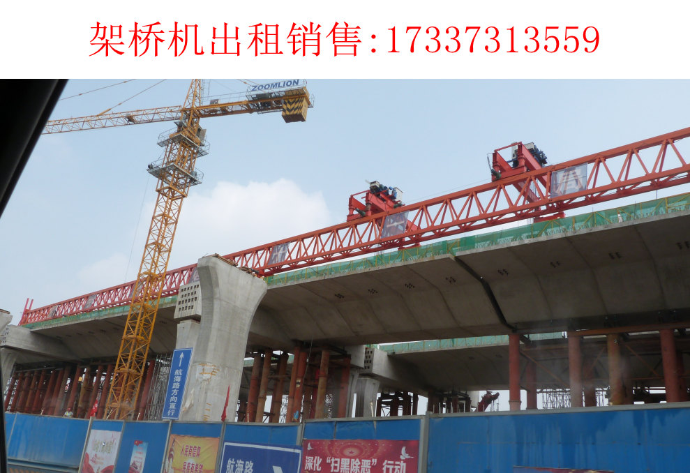 四川自貢自平衡架橋機(jī)廠家17337313559就跟大家分享一下架橋機(jī)架設(shè)的方案1、鋪設(shè)軌道在該橋第四、五跨橋面鋪設(shè)送梁軌道,軌枕用普通木枕,43型鋼軌用夾板連接好,軌道要平順。 2、組拼架橋機(jī)運(yùn)到工地后用一臺(tái)16噸吊車配合組裝,四天組裝好通過調(diào)試便可進(jìn)行架梁。在第四孔橋面軌道上鋪設(shè)架橋機(jī)大梁,加固聯(lián)結(jié),并拼組加固框架和橫連接系桿件。在大梁上拼裝橫梁,橫梁上鋪軌道,安裝軌道桁車,并組拼電動(dòng)慢速絞車。軌道桁車安裝雙軌緣接片,之后安裝滑車組。起高架橋機(jī),安裝走行天車,并將大梁與走行車聯(lián)為一體。 經(jīng)試運(yùn)轉(zhuǎn)后,吊重物試驗(yàn),檢查各部構(gòu)造。架橋機(jī)行走到位后,伸臂到2#墩頂,安裝前腿再檢查走行桁車吊鉤是否到位。 3、架梁作業(yè) 架梁順序分別為第三、第二(跨鐵路)、第一跨由西向東逐跨進(jìn)行。 由于忻州公路局承擔(dān)的引橋路面在本次架梁時(shí)還未完成,無法使用,因此我單位只能用兩臺(tái)120噸吊車在第五跨南側(cè)由下向橋上平車送梁,然后橫 移將箱梁從第五跨送到第四跨架橋機(jī)腹中,橫梁后退,桁車把梁吊起向前運(yùn)行,在向前運(yùn)行時(shí),把梁橫移到預(yù)架梁位置。每跨架梁按照先中間后兩邊,由易而難的順序架設(shè),架完第三跨梁,再進(jìn)行第二跨梁架設(shè)。架橋機(jī)架完一跨梁后,移動(dòng)架橋機(jī)到下一跨位置進(jìn)行架梁,直至第一跨架設(shè)完畢。