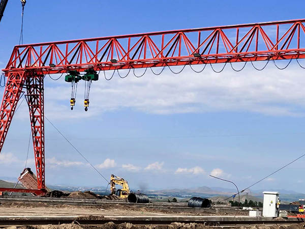 Mh型桁架電動(dòng)葫蘆門式起重機(jī)是中小型可帶懸臂的簡易門式起重機(jī),電動(dòng)葫蘆采用CDI、MDI等形式,主梁角鋼或是槽鋼與工字鋼焊接而成的組合梁,大車運(yùn)行機(jī)構(gòu)采用三合一驅(qū)動(dòng)裝置。其適用起重量為3-16t,適用跨度為10-26米,工作環(huán)境溫度在-25-+40℃范圍內(nèi)。其結(jié)構(gòu)簡單、安裝、使用、維修方便,多用于工廠、貨場、碼頭、水電站等頻度低或額定起重量起吊次數(shù)少的場所。有點(diǎn):貨期快、經(jīng)濟(jì)實(shí)惠;缺點(diǎn):使用中晃動(dòng)相對較大、工作級別低,不適用繁重場合。本起重機(jī)設(shè)有地面、操縱室和遙控三種操縱形式以供用戶選擇使用。