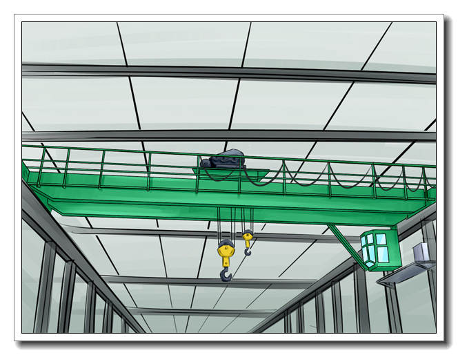 本機由箱形橋架,大車運行機構、小車、電氣設備四部分構成。全部機構均在操作室內操縱。